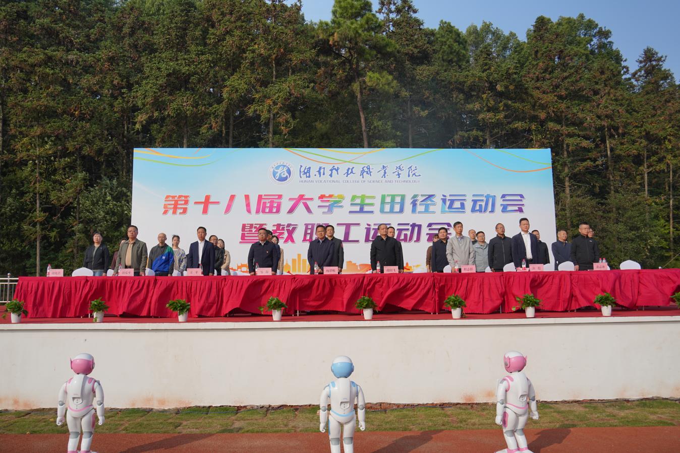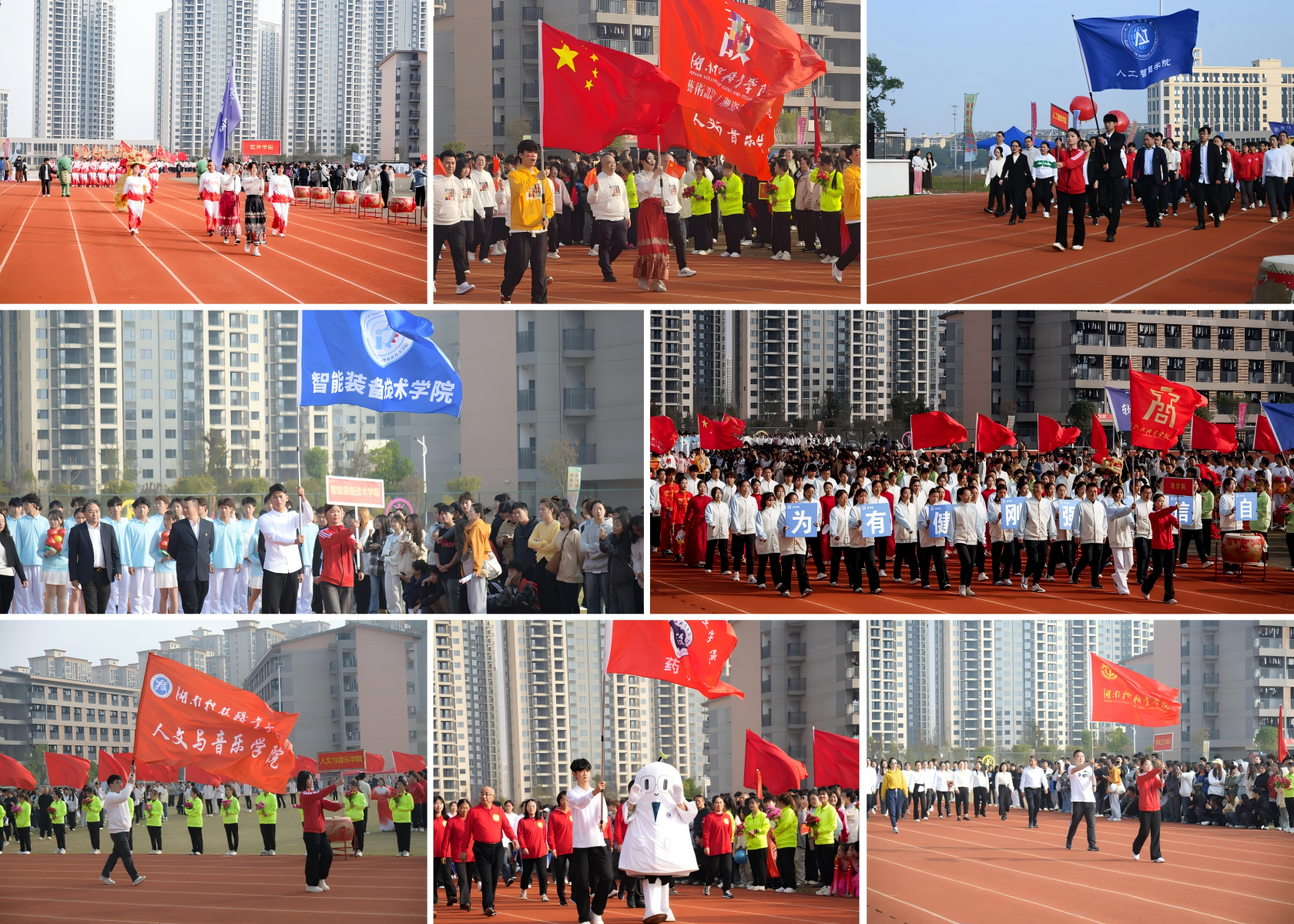 11月1日上午,天心校区北院田径场内数千名师生齐聚一堂,热闹非凡,充满了欢乐气氛。田径场上彩旗飘扬,欢呼声、呐喊声响彻全场,学校第十八届大学生田径运动会暨教职工运动会隆重举行。党委书记杨翠明、校长蒋阳飞及其他校领导出席,各职能处室负责人,各二级学院负责人、全体运动员、裁判员、师生代表及相关工作人员等参加开幕式。开幕式由党委委员、副校长谭见君主持。