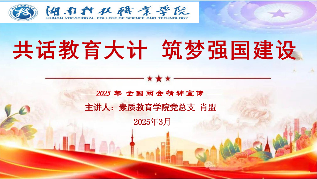 3月26日下午,素质教育学院党总支在天心校区北院办公楼412室举办了以“党建联建聚合力,志愿服务树新风”为主题的2025年3月党日活动。党总支全体党员参加活动。素质教育学院党总支有关负责人,以《共话教育大计 筑梦强国建设》为题,围绕全国两会精神,讲授了一堂专题党课。他聚焦两会期间习近平总书记的重要讲话精神,以及政府工作报告中关于教育等领域的主要内容,立足本职工作,深入浅出地解读了全国两会精神的核心要义。他强调,新时代新征程上,我们必须深刻把握中国式现代化对教育、科技、人才的需求,强化教育对科技和人才的支撑作用,进一步形成人才辈出、人尽其才、才尽其用的生动局面。
